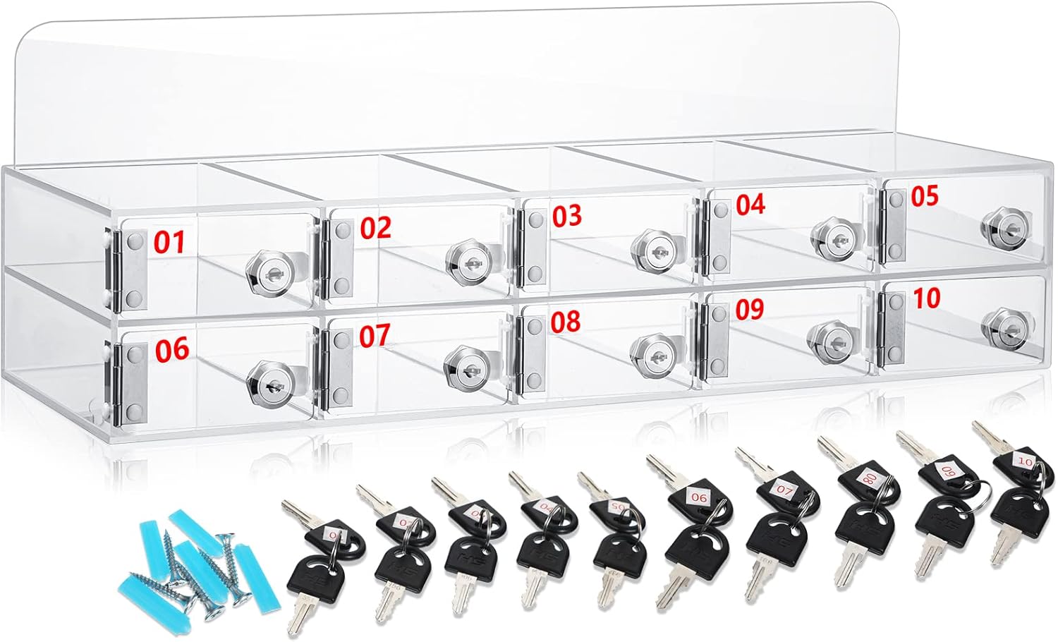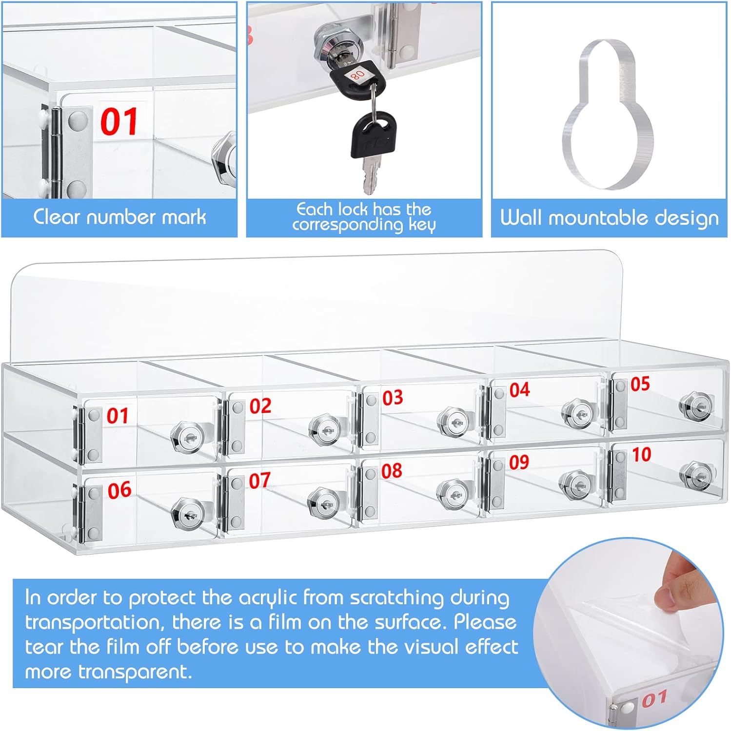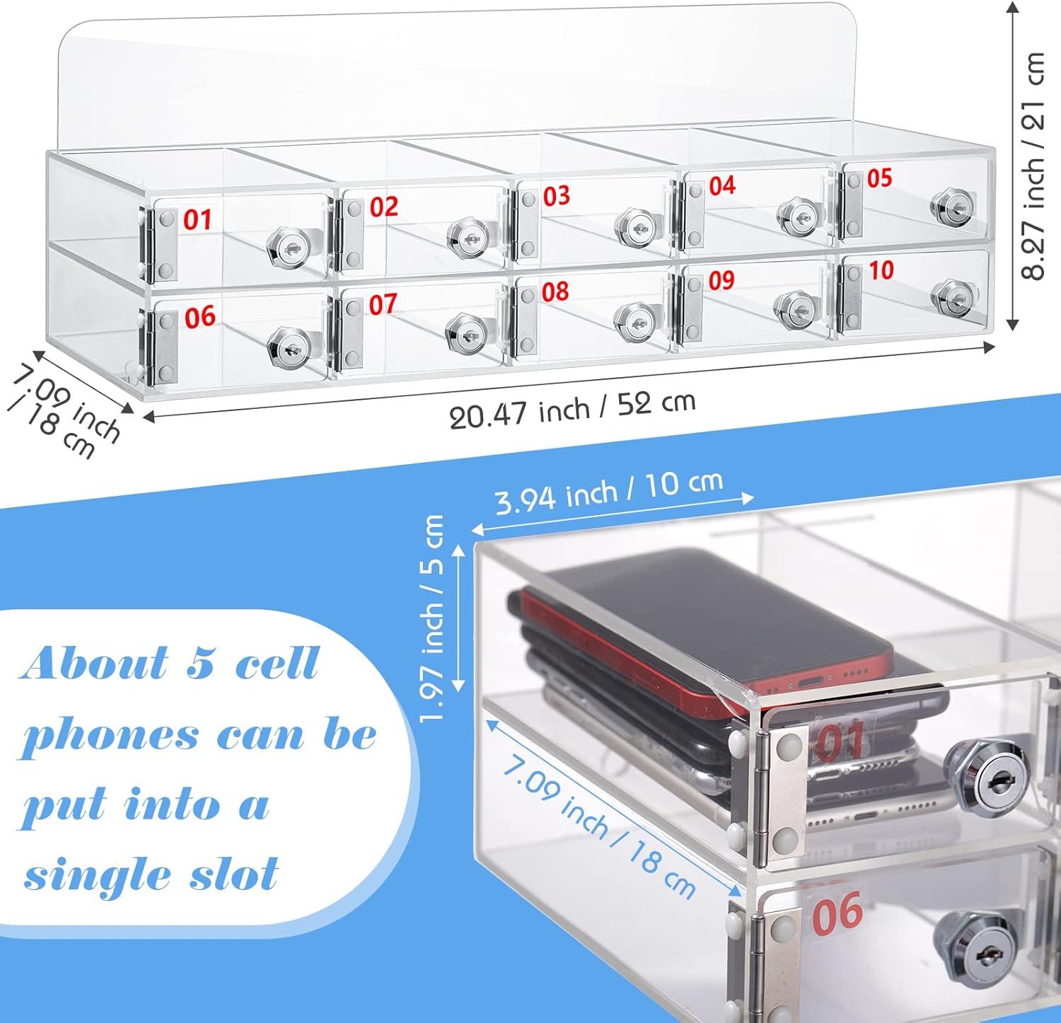 What You Will Receive: you will receive 1 piece of cell phone storage box with 10 small cells; Enough space for people to store key, wallets, cellphones and other small items, and you can also share them with others. Safe to Use: lockers for employees are come with small keys on it; Each key and lock corresponds to each other, increasing security of protection of your privacy and belongings without worrying about misplaced items
