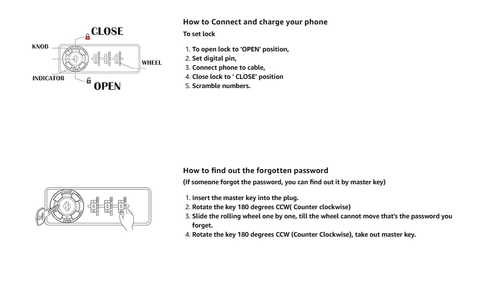 Master key when someone loses his code, please use the Master key to open the bay door.