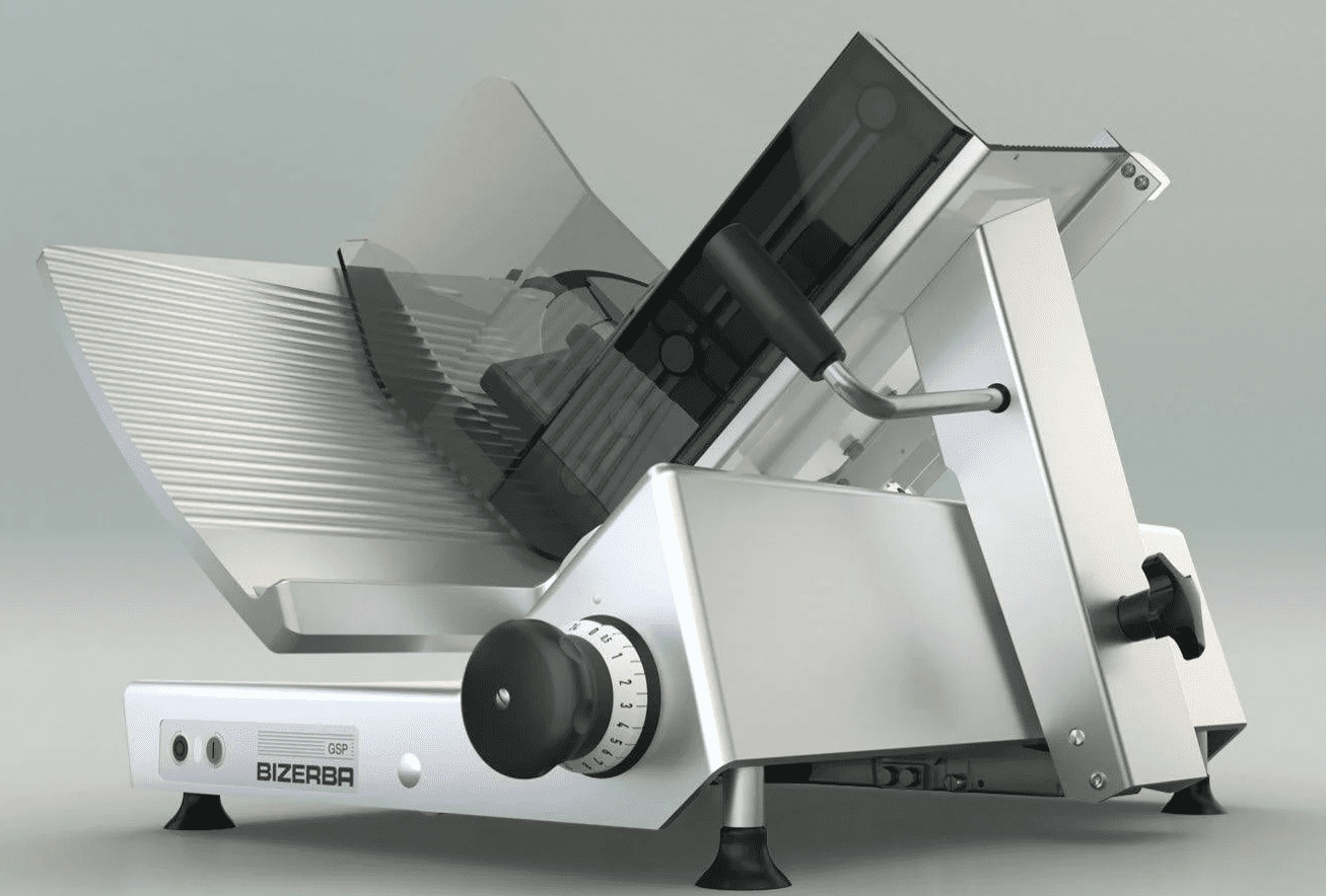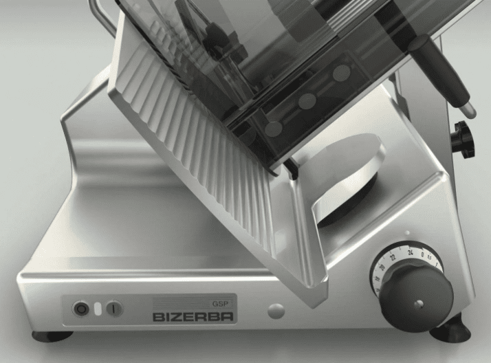 The slicer’s sophisticated design uses high-end materials and will endure prolonged operation in commercial kitchens without overheating. Manual operation provides precise control over the slicing process, while precision-machined grooves on the carriage allow for food products to automatically slide at an incline of 25 degrees toward the operator to make slicing effortless. The 306-point remnant holder secures food products in place for smooth, efficient operation, while the adjustable control knob sets slice thickness to any size between 0″ and 15/16″.