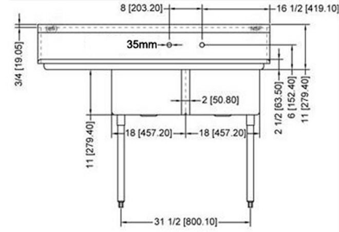 The SI818-2LC 18″ x 18″ x 11″ Center Drain Two Compartment Sink with a left drain board is designed for efficiency and durability in commercial kitchens. Constructed from 18-gauge Type 304 stainless steel, this sink features coved corners that enhance safety and facilitate easy cleaning. The dual compartments allow for effective soaking and washing, while the left-side drain board provides additional space for drying and organizing utensils or pots. With dimensions of 18 inches by 18 inches and a depth of 11 inches, this sink is ideal for maximizing workflow in smaller kitchen environments, ensuring that food preparation tasks are streamlined and hygienic.