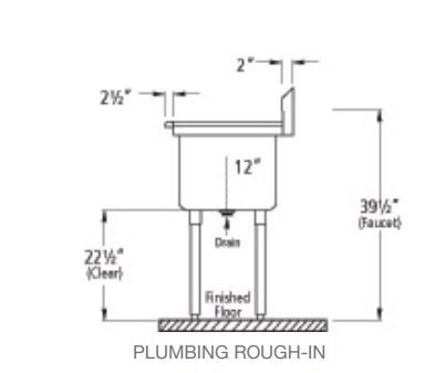 • Sink heights are 36” floor to rim and 44.” floor to top of back splash.