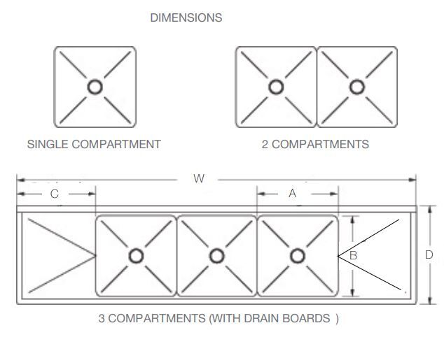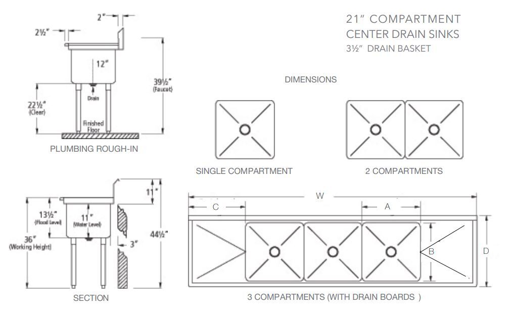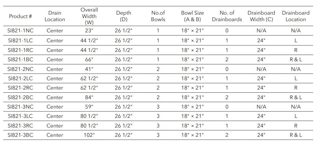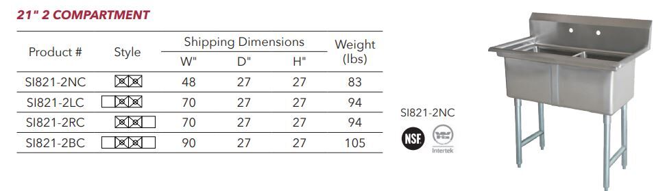 The EFI 18″ x 18″ x 21″ x 14″ Center Drain Two Compartment Sink with Right Drain Board (model SI821-2RC) is expertly crafted from 18 gauge, Type 304 stainless steel, ensuring exceptional durability and resistance to corrosion. This sink features coved corners for enhanced safety and ease of cleaning, making it ideal for busy commercial kitchens. Each compartment has a depth of 14 inches, providing ample space for washing and rinsing. The design includes a right-side drain board for efficient draining and drying of utensils, while the die-stamped sink bottom promotes positive drainage. With its seamless construction and TIG welded joints, this sink not only meets hygiene standards but also adds a sleek look to any food service environment.