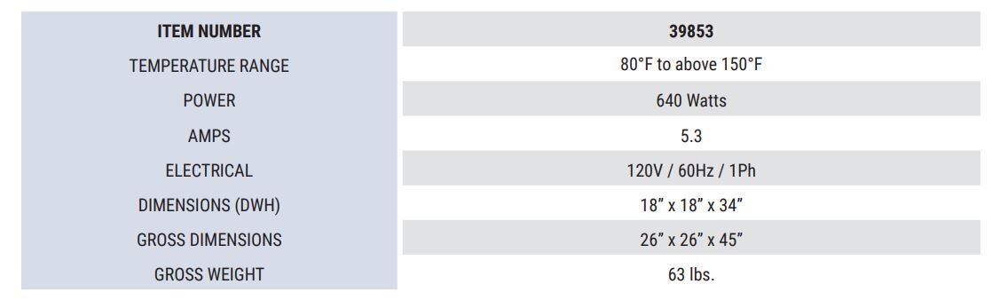 This warmer utilizes circulating, heated air to maintain food above 150°F for extended periods of time. Its versatility is showcased with a shelving system that allows you to adjust the shelves to your specific needs resulting in an endless variety of food items it can accommodate.
