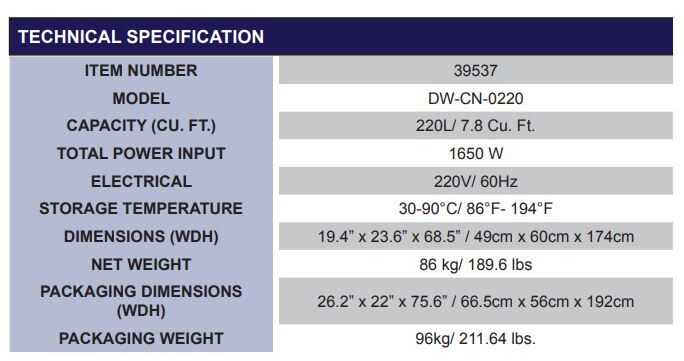 CAPACITY (L / CU. FT): 220 L / 7.8 Cu. Ft.