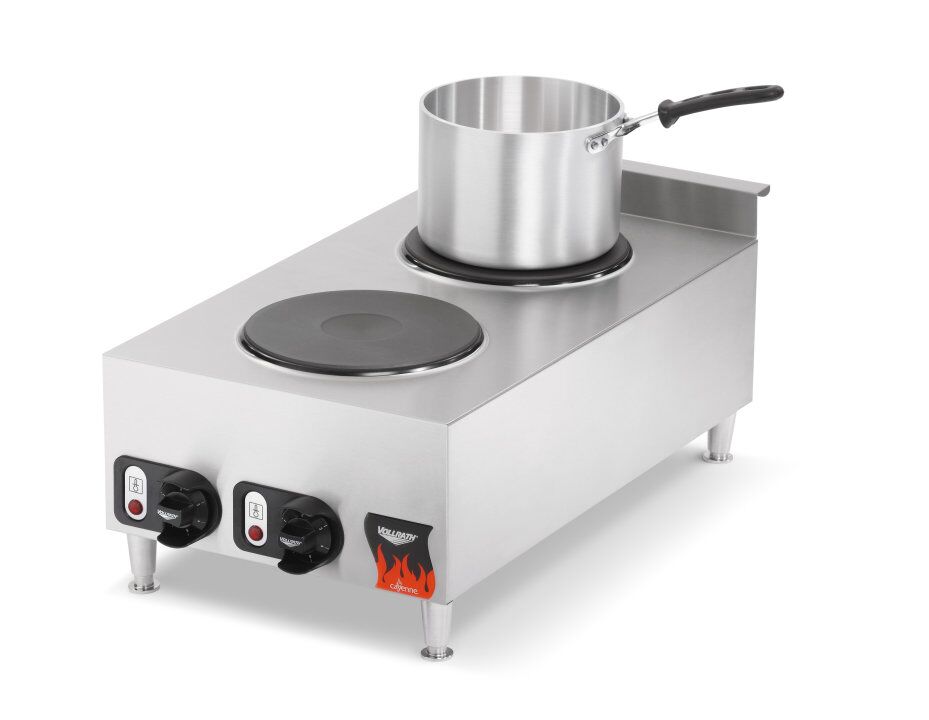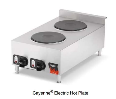 The Vollrath® electric hot plate is powerful, compact and convenient. This narrow unit features front and back solid plate burners that save space and heat quickly. Featuring individual controls for each burner, this unit allows you to cook multiple foods at one time. The body of this unit is made of durable stainless steel, and the heavy-duty legs are adjustable, providing height flexibility based on preference. A rear safety skirt protects the internal components, and the flat surface is easy to clean, saving you valuable time.