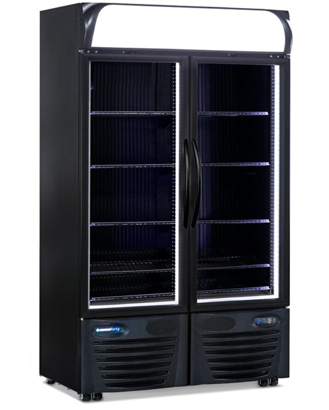 With a depth of 24 inches and width of 46.5 inches, this model can take its place in existing racks or shelf units without any modifications. Black interior and exterior with brilliant LED lighting will help your products stand out.