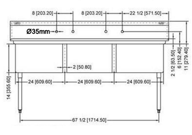 The EFI 24″ x 24″ x 14″ Corner Drain Three Compartment Sink (Model SI824-3N) is designed for efficient food preparation and washing in commercial kitchens. Constructed from 18-gauge Type 304 stainless steel, this sink ensures durability and resistance to corrosion. Its three spacious compartments, each measuring 24 inches square and 14 inches deep, provide ample space for washing, rinsing, and sanitizing dishes. The corner drain design enhances drainage efficiency while minimizing the risk of water pooling. This model does not include a drain board, making it ideal for setups where space is limited or where additional drainage surfaces are unnecessary. The sink’s coved corners facilitate easy cleaning, ensuring a hygienic work environment.