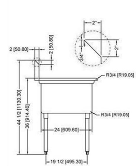 24″ x 24″ x 14″ Corner Drain Two Compartment Sink With Left Drain Board SI824-2L Features: