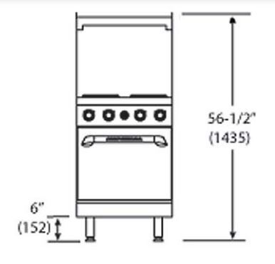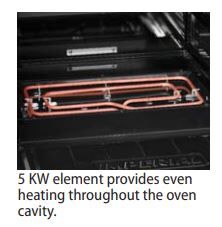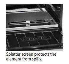 The base of the IR-4-E electric range is equipped with a space-saver oven that accommodates one standard sheet pan, and this oven’s element is protected from splatters by a screen. To ease cleaning, the sides, deck, rear, and interior door surfaces of the oven are made of smooth porcelain.