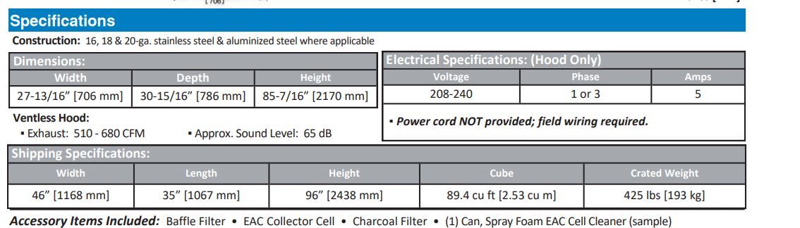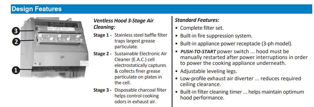 Giles Free-Standing Ventless Hoods are certified Type-1 recirculating hoods featuring our proven Ventless Technology. Should there be need to add hood space in your kitchen, one of these alternatives possibly can avoid the need for expensive kitchen modifications & costly ductwork required to vent an additional hood to the outside. While not suitable for every situation … these hoods often can be used to develop food service opportunities in many non-traditional sites where previously they were not feasible, or impossible … traditional vented hoods, however, should always be the first alternative considered.