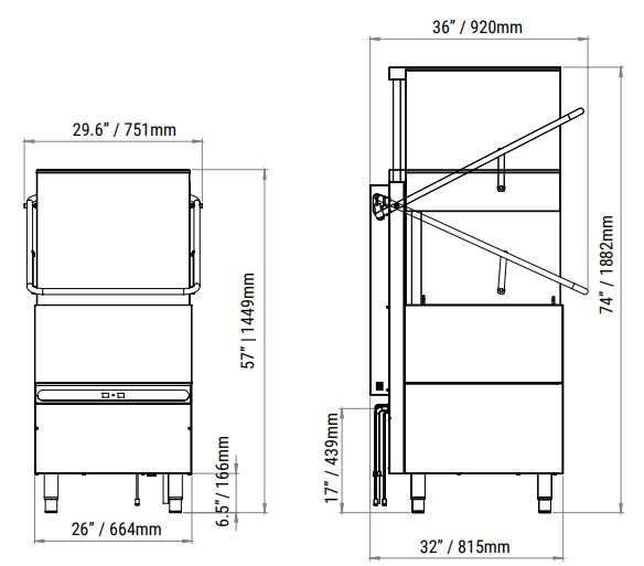 GROSS DIMENSIONS: 30″ x 36″ x 57″ / 751 x 920 x 1449 mm (74″ / 1882 mm open)