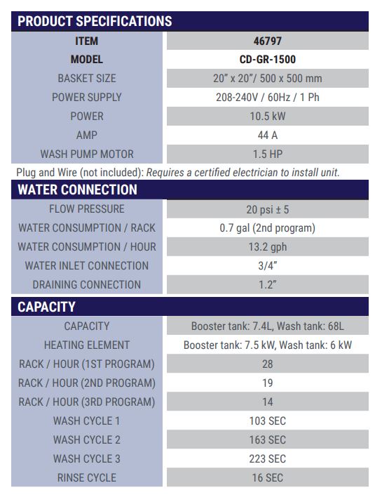 ELECTRICAL: 208-240V / 60Hz / 1Ph