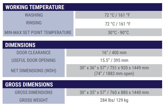 HEATING ELEMENT: Booster tank: 7.5 kW, Wash tank: 6 kW