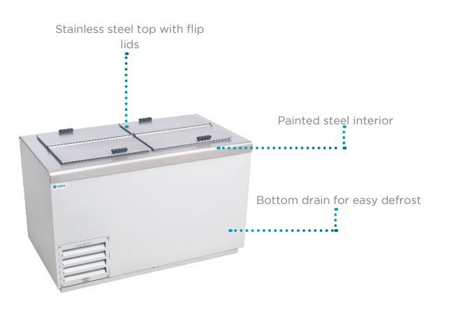 Maximize frozen treat storage with this Excellence Heavy-Duty Storage Ice Cream Freezer Series, featuring durable, heavy-gauge steel construction for lasting performance in commercial environments. Equipped with a stainless-steel top and flip-top lids, painted galvanized-steel interior, self-contained refrigeration, bottom drain for easy defrost, and UL and UL-Sanitation certification—this freezer ensures effortless access and cleaning. Whether you need compact (HFF-4HC), mid-size (HFF-8HC), or large-capacity (HFF-12HC) models, each cabinet maintains the same rugged build, efficient cooling, and user-friendly design—ideal for ice cream shops, cafeterias, or convenience stores seeking reliable, high-volume frozen storage solutions