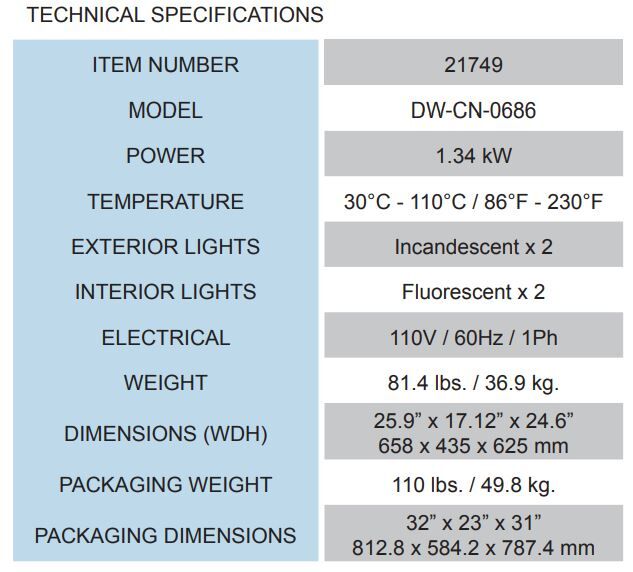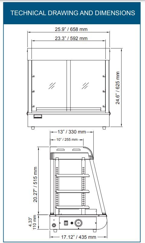 Designed with adjustable trays and glass on all sides. These warmers are equipped with a thermostat monitor for consistent temperatures. Water tray included to add humidity to the cabinet. Opens front and back.