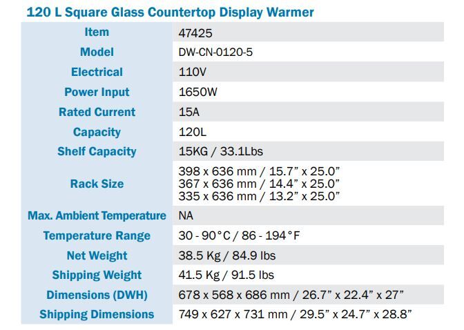 The Omcan Square Glass Countertop Display Warmer offers a spacious and eye-catching display for your food items, making it easy for customers to see and choose their preferred dishes. Its precise temperature control ensures that your food stays at the ideal serving temperature.