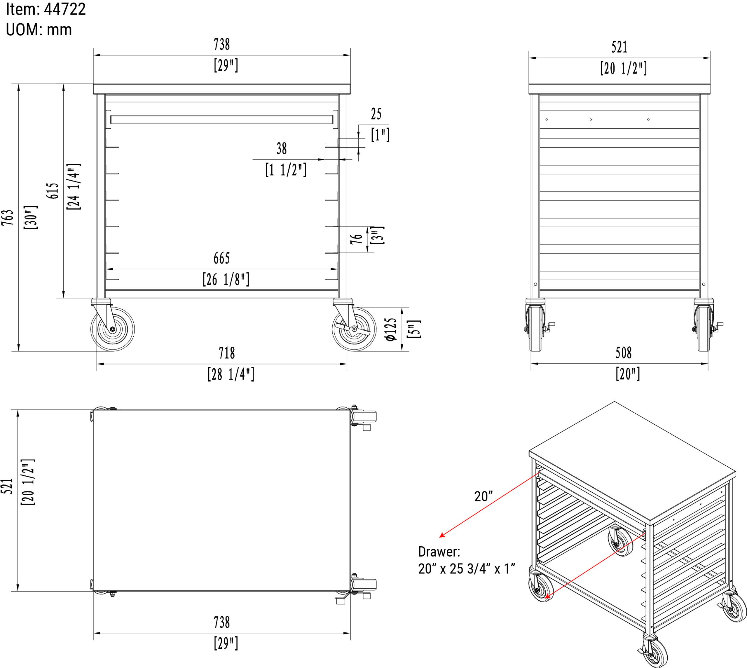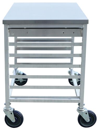 This 28.25″ x 18″ x 30″ Aluminum Meat Slicer Cart utility cart is sturdily constructed to endure tough everyday handling. Finished for easy cleaning. Great for supermarkets and various foods service operations. Shipped knock-down. (Two shelves are included. Additional shelf sold separately)