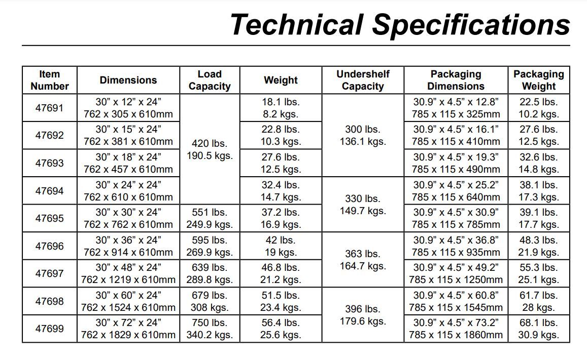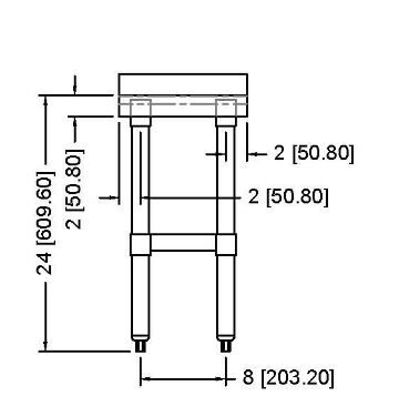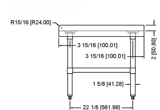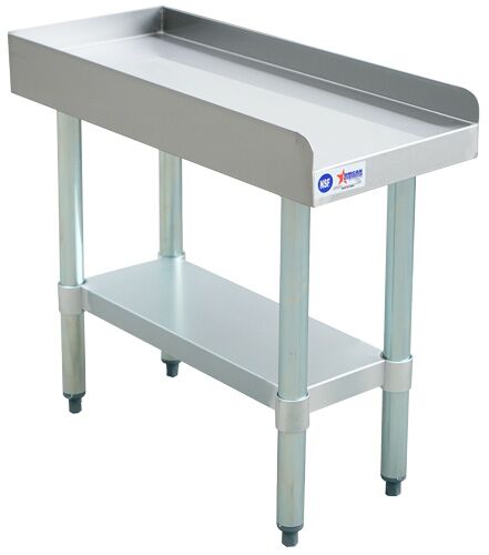18-Gauge 430 Stainless steel construction, stainless steel legs and undershelf. Adjustable feet. Table height is 24″. Lip size is 2″.