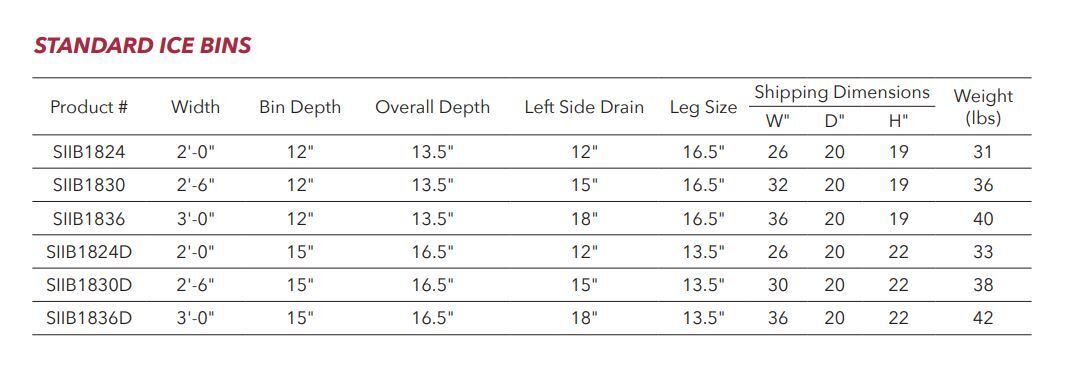 36″ Underbar Ice Bin – 15″ Deep Bin SIIB1836D Features: