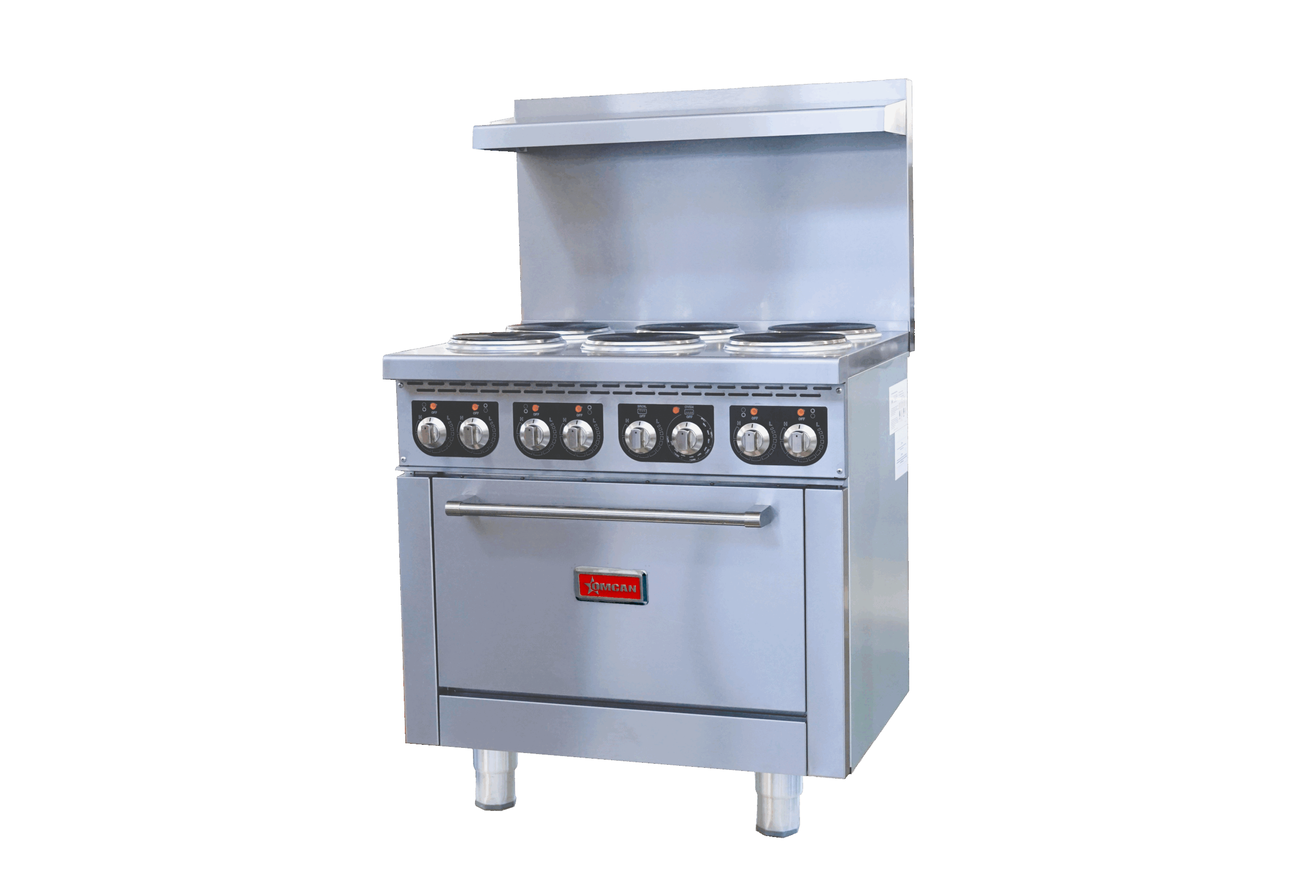 This electric gas range features 6 Round Hot-Plate Burners and a Standard Oven, delivering a total of Ideal for high-demand environments, it ensures efficient cooking and consistent results.