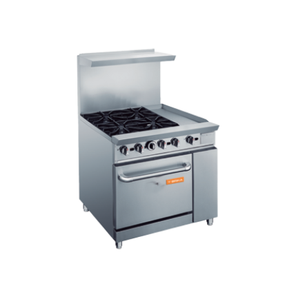 This gas range is designed for commercial kitchens. Ideal for restaurants and cafeterias for a variety of culinary preparations.