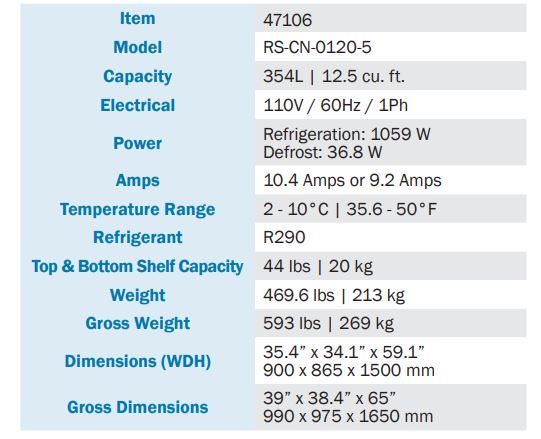 POWER: Refrigeration: 1059 W / Defrost: 36.8 W