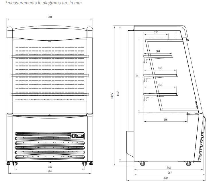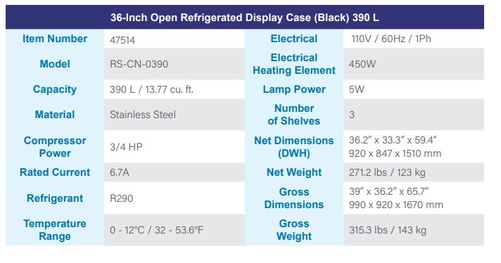The ultimate merchandiser is here. Elegantly display your products in this open refrigerated floor display case. This stainless-steel unit features glass shelves: turn on the LED lights and watch your products come to life in front of your customers. It’s convenient digital controller allows you to access the temperature, refrigeration, anti-fog, lighting and evaporated water settings with just the click of a button. Bring this refrigerated floor display case to your convenience store, deli or bakery and start showcasing your products the right way to increase impulse sales.