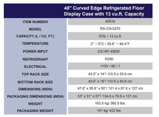 Elevate your dessert presentation, preserve your creations with precision, and captivate your customers with our 36″ Curved Edge Refrigerated Floor Display Case. Embrace excellence, and make this essential addition to your bakery or dessert shop today.