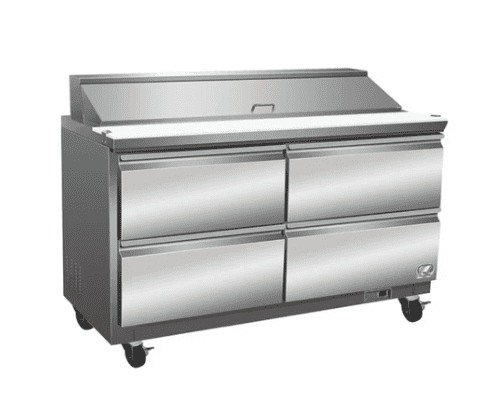 Featuring a sleek, all-stainless-steel exterior, these prep tables deliver a clean, professional look that suits any restaurant, café, or catering operation. Inside, the high-grade stainless-steel floor with coved corners ensures easy cleaning and long-term durability. The expanded mega top design provides additional pan capacity, allowing chefs to keep a wider range of fresh ingredients within reach for faster, more efficient food prep.