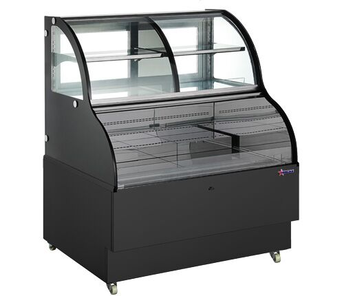 The ultimate merchandiser is here. Elegantly display your products in this dual-service open refrigerated floor display case. This stainless steel unit features glass shelves; turn on the LED lights and watch your products come to life in front of your customers. Its convenient digital controller allows you to access the temperature, refrigeration, anti-fog, lighting and evaporated water settings with just the click of a button. Bring this refrigerated floor display case to your convenience store, deli or bakery and start showcasing your products the right way to increase impulse sales.