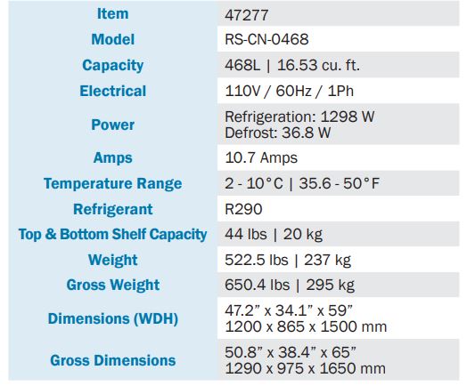 POWER: Refrigeration: 1298 W / Defrost: 36.8 W