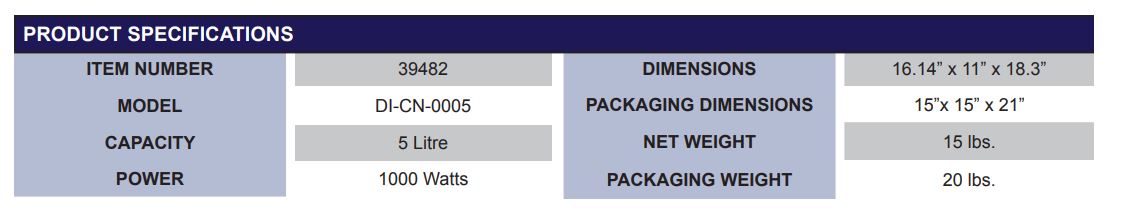 ELECTRICAL: 110V / 60Hz / 1Ph