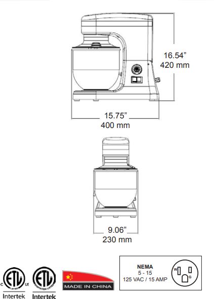 ELECTRICAL: 110 V / 60Hz / 1Ph