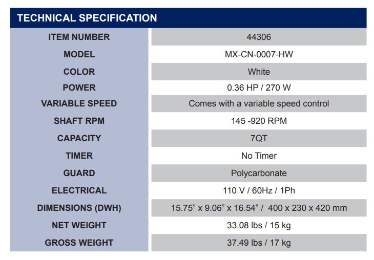 This Omcan baking mixer is the perfect blend of reliable and efficient. It is excellent for baking and an essential staple in your commercial kitchen. Add this 7 QT. capacity mixer in your bakery or shop, designed to suit many establishments and keep up with all the demands of busy day-to-day service!