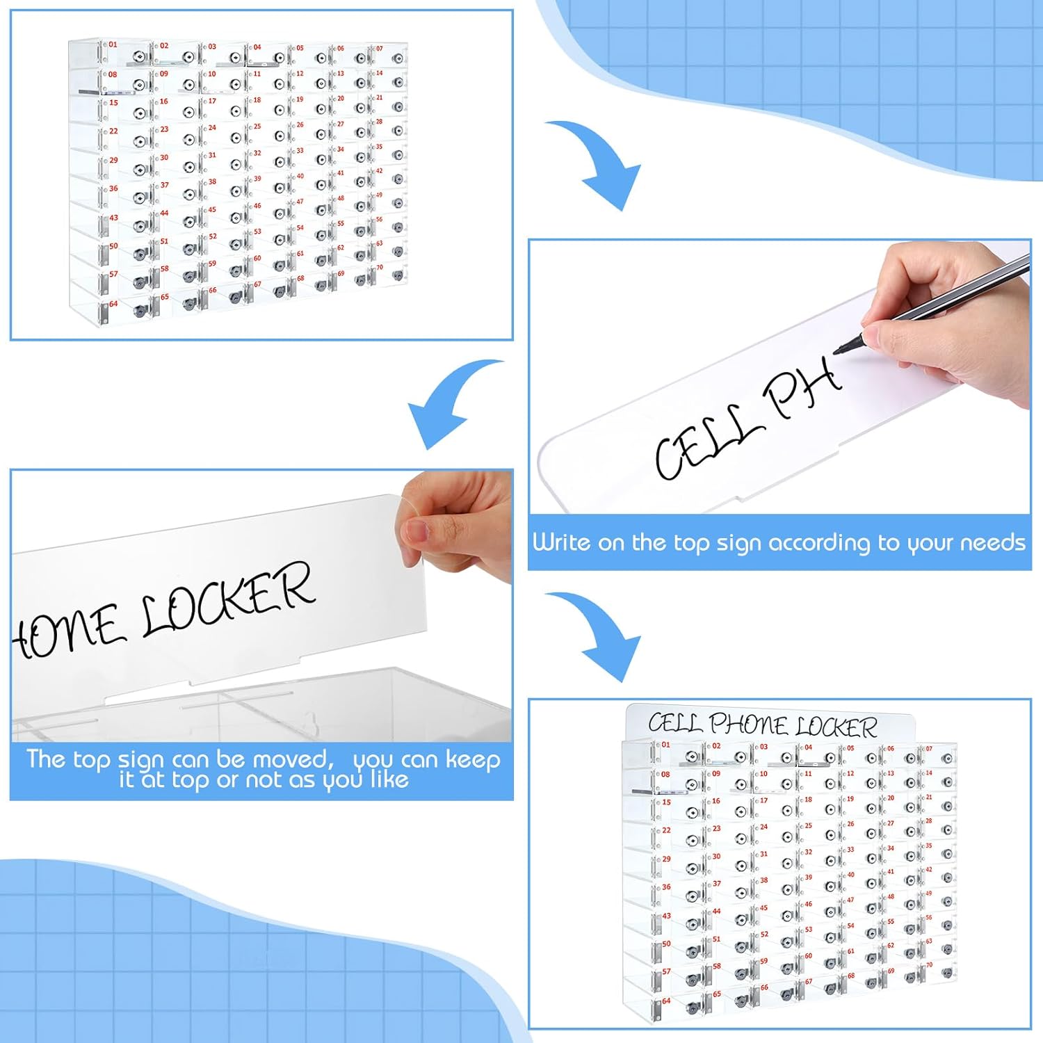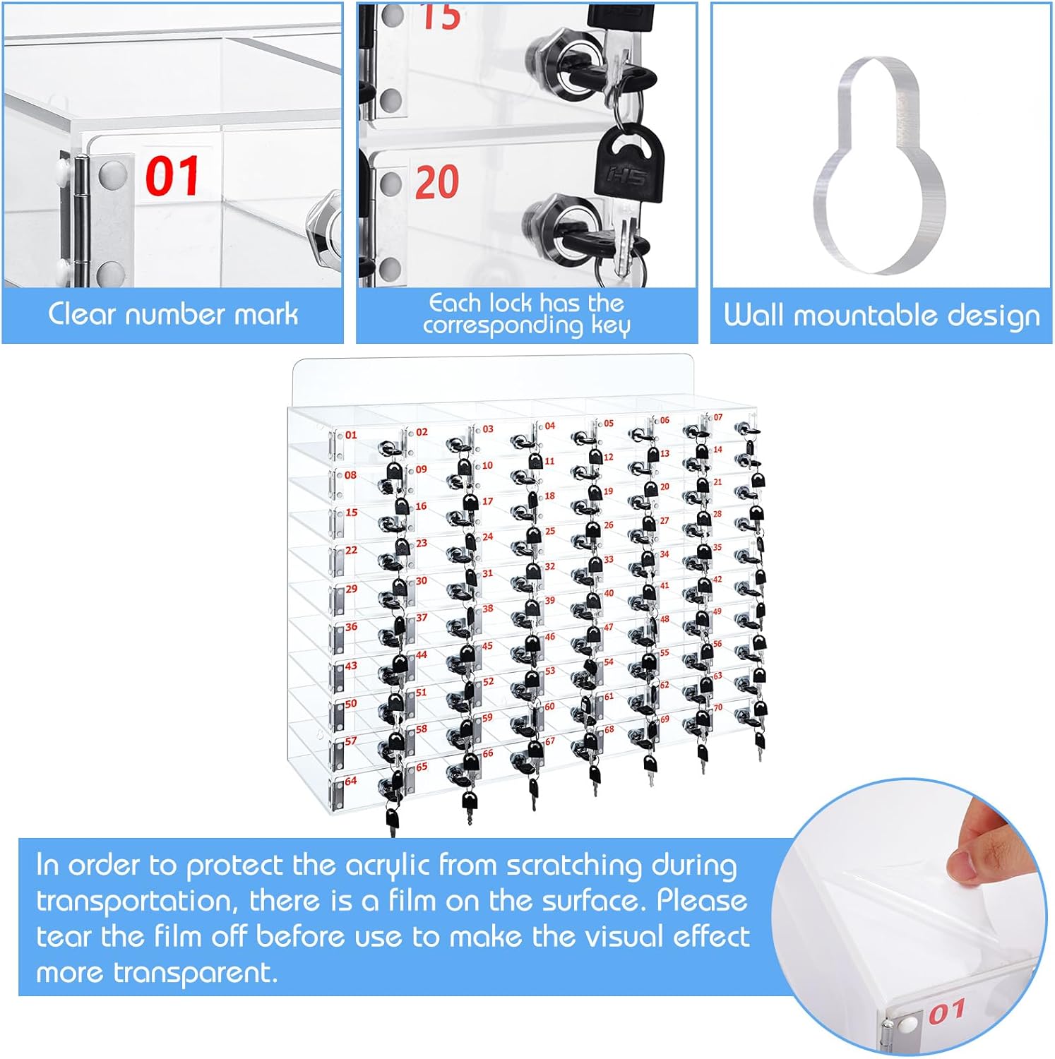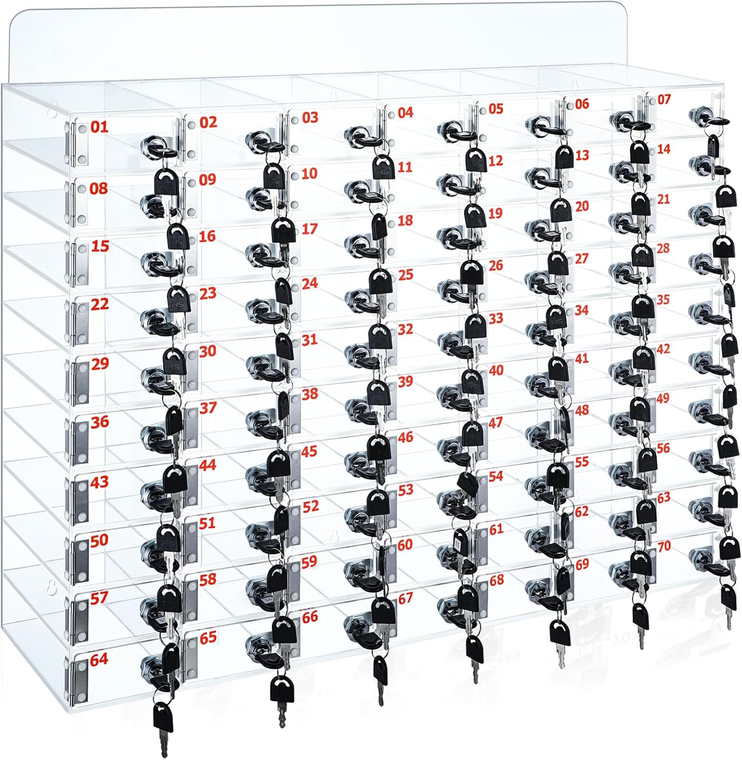What You Will Receive: you will receive 1 piece of cell phone storage box with 70 small cells; Enough space for people to store key, wallets, cellphones and other small items, and you can also share them with others. Safe to Use: lockers for employees are come with small keys on it; Each key and lock corresponds to each other, increasing security of protection of your privacy and belongings without worrying about misplaced items