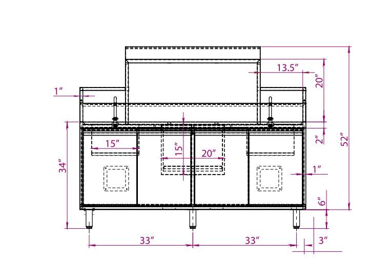 • Net Dimensions (WDH): 72” x 30” x 34” (1828.8 x 762 x 863.6 mm)