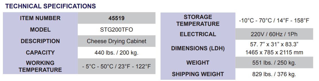 Affinacheese® has been designed specifically for drying/seasoning of all types of cheeses. All internal and external parts that may come in contact with food are built using AISI 304 stainless steel.