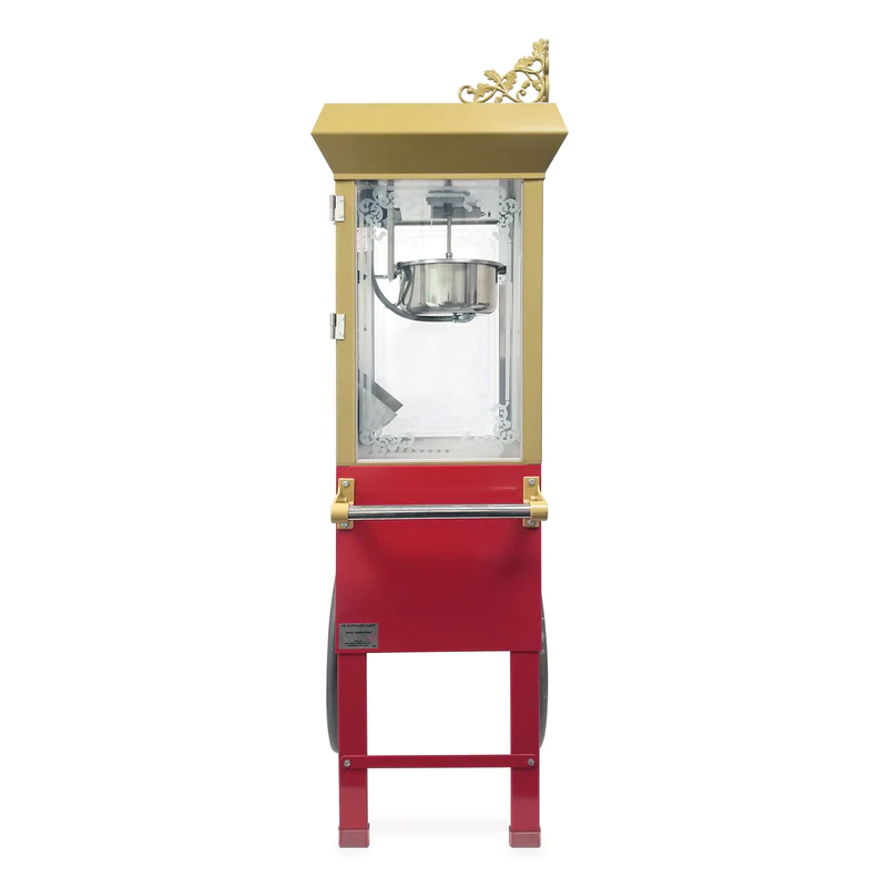 The antique styling joined with a powerhouse of a machine creates a deluxe 6 oz. showpiece. The Antique Deluxe 60 Special Popper #2660GT is one of Gold Medal’s top-selling popcorn machines, shown on the #2659CR Cart – sold separately. The PowerOff® Control is now standard, adding an additional safety feature, assisting in reducing energy costs, and extending the kettle life. This old-fashioned popper is perfect for retail, home theatres, schools, and more. Popper and cart sold separately.