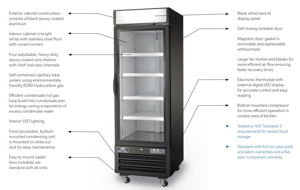 Arctic Air’s glass door reach-in Merchandiser refrigerators are designed to bring you real, commercial-grade performance at a truly incredible value. All Arctic Air commercial products are tested to NSF levels and must pass numerous quality control inspections throughout the manufacturing process.