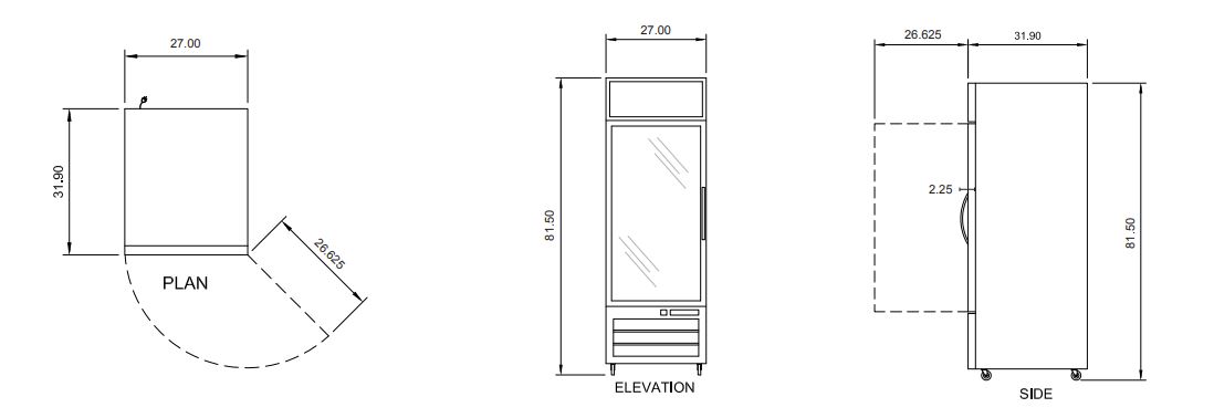 External Dimensions: 27″ W x 32″ D x 81.5″ H