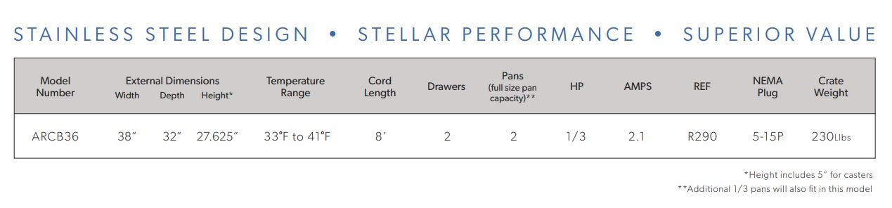 Arctic Air’s refrigerated chef bases are designed to bring you real, commercial-grade performance at a truly incredible value. All Arctic Air commercial products are tested to NSF levels and must pass numerous quality control inspections throughout the manufacturing process.