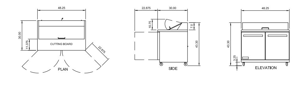 The exterior of our ref. prep table models are beautifully designed in a smooth stainless-steel finish for a professional look that you would find hard to limit in any commercial application. More importantly, our products have many features that are desired in today’s commercial foodservice market. Features that include an inner door liner that is constructed of a hi-impact ABS polymer with an irregular shaped surface along with a vaulted design that extends beyond the door opening when shut. This door liner allows the end user lower compressor run times over the life of the unit due to its irregular surface working in conjunction with the vaulted door liner, other features include hi-grade stainless steel floor with coved corners, high output yet electrically efficient fan motors, effective “cool air over” pan-well design assures the end user that the exposed pan well will stay within the legal temp. limits for safety when installed properly, electronic micro-processing digital temperature control with external digital display, bottom mounted compressor along with a front accessible bottom mounted condensing unit for easy maintenance/cleaning/servicing.