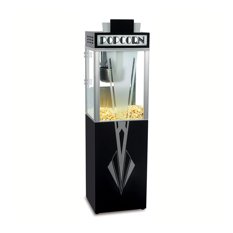 Home theater? Man Cave? Screening Room? This one-of-a-kind Art Deco Style Popper #2660FG is perfect for them all with sleek graphics, tempered etched glass, removable E-Z Kleen kettle and a heated corn deck. Picture shows the #2660FG Popper on the #2660FGB Base – items sold separately.
