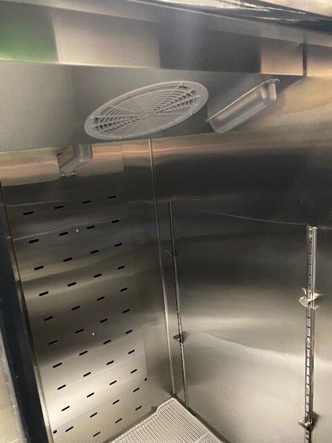 You are viewing a brand new never used freight damaged Atosa Stainless steel solid 1 door upright cooler. It was used as a demo model. This cooler has a stainless steel exterior and interior, with rear mount compressor and environmentally friendly R290 refrigerant. Dixell digital controller, Maintains a temperature of 33°F to 40°F Pre-installed castors. 3 pre-installed shelves per section. LED interior lights. We also sell other new models and have financing options. Our Clearance Warehouse is located in the Foothills Industrial Park #5, 6613 – 44th Street SE, Calgary, AB. Open Monday to Friday 9am to 5pm.