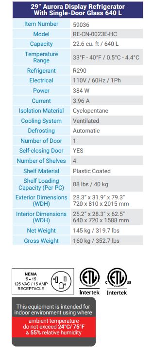 Temperature Range: 33°F – 40°F / 0.5°C – 4.4°C