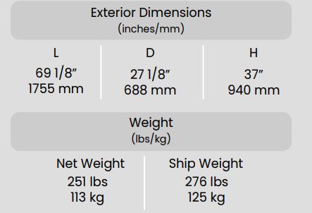 Exterior Dimensions ( L x D x H ) 69 1/8 x 27 1/8 x 37 inch