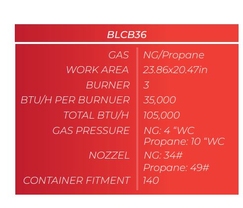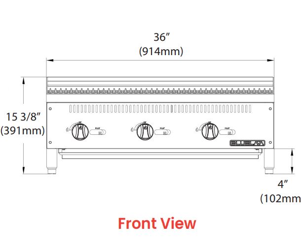 Countertop, stainless steel design, heavy duty, gas (36″W x 28-3/4″D x 15-3/8″H), 105,000 BTU/H