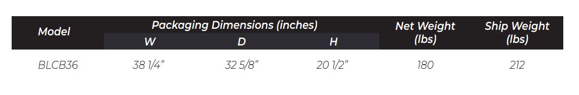 Exterior Dimensions ( L x D x H ): 36″ W x 28 3/4″ D x 15 3/8″ H