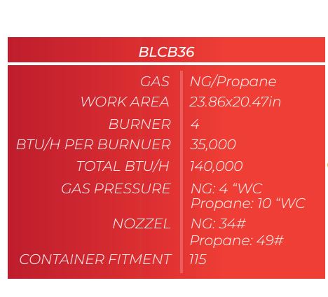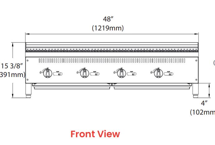 Countertop, stainless steel design, heavy duty, gas (47″W x 28-3/4″D x 15-3/8″H), 140,000 BTU/H