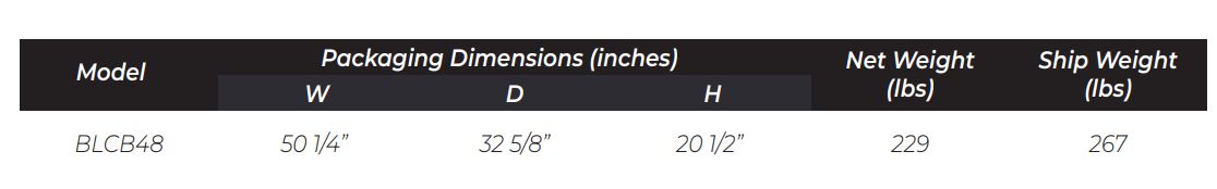 Exterior Dimensions ( L x D x H ): 48″ W x 28 3/4″ D x 15 3/8″ H